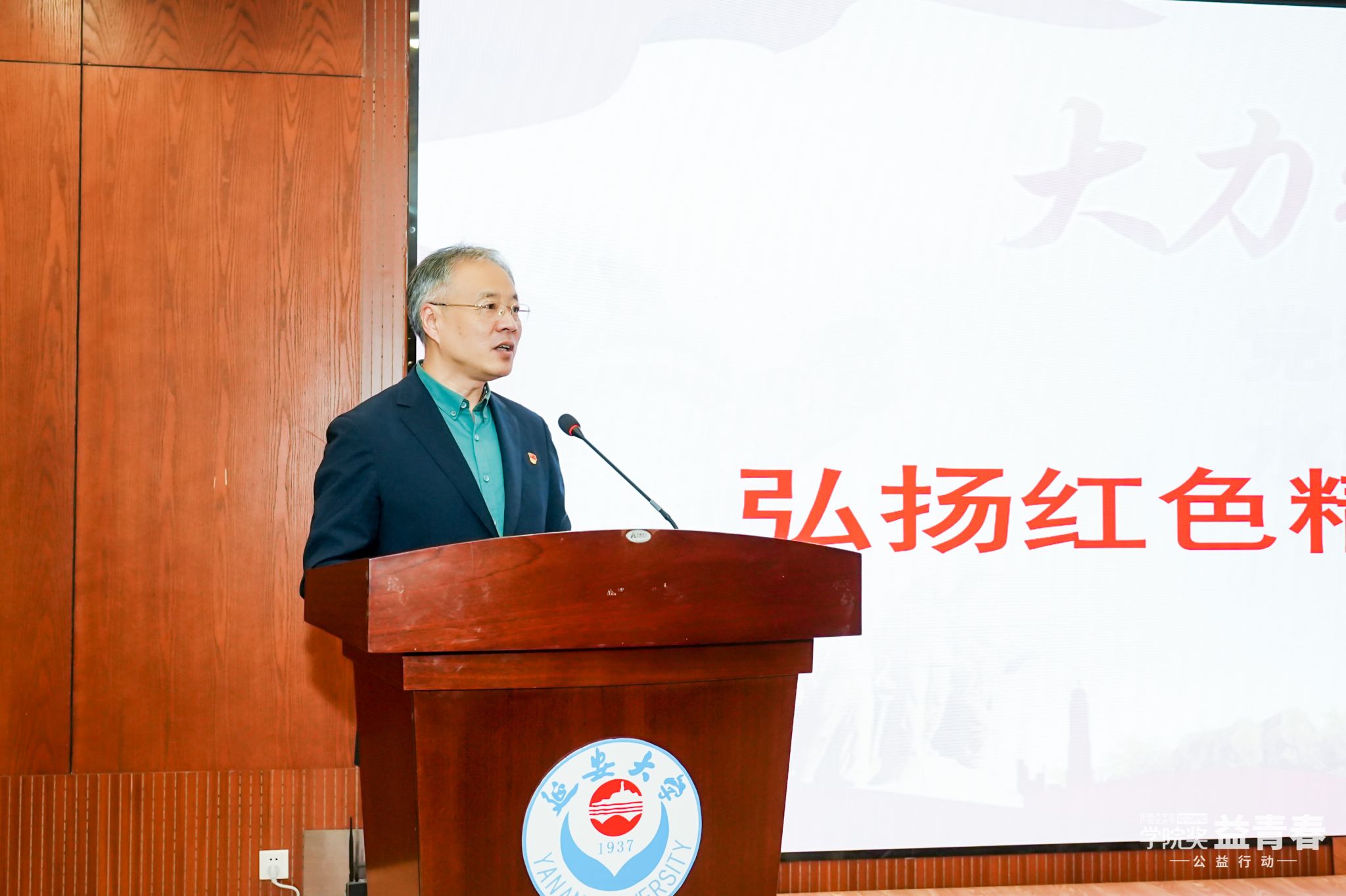 (本网讯)秉承公益初心,弘扬红色精神力量。10月18日下午,中国大学生广告艺术节学院奖·益青春公益行动走进革命摇篮延安大学,举办2024“沂蒙山杯”红色文化分享会暨中国青年公益微电影创作大赛,使延安精神与沂蒙精神进行了一场跨越时空的对话。本次活动由中国广告协会主办、延安大学文学院承办,中国大学生广告艺术节学院奖·益青春评审主席、广告人文化集团首席战略官、央视市场研究ctr融媒体研究院研究员、中国广告协会学术委员会常委周伟,广告人文化集团副总裁张汛,红色沂蒙艺术党课宣讲团、鲁南制药品牌经理凌爽,延安大学教务处副处长高生军,文学与新闻传播学院院长党子奇,副院长杨绍固,新闻系主任郭小良及师生代表参加活动。活动由新闻24井奕竹同学主持。