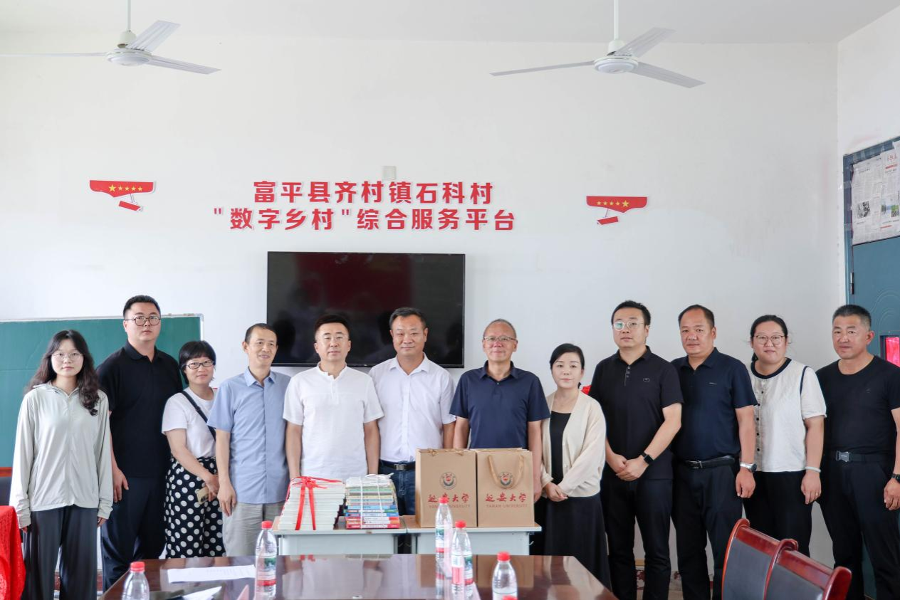 (本网讯)为深入贯彻落实国家乡村振兴战略,落实学校立德树人根本任务,拓展我院实践育人平台建设与实践育人阵地深入基层,2025年7月24日,我院与富平县齐村镇石科村在石科村村委会举行了校地社会实践基地共建签约暨授牌仪式。齐村镇乡镇领导与石科村两委班子成员,文学院党委书记姬小龙、教授孟万春、副教授白玉等一行5人,文学院社会实践队全体成员参加此次活动。活动由齐村镇党委书记齐杲主持。